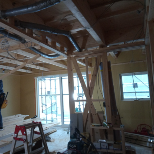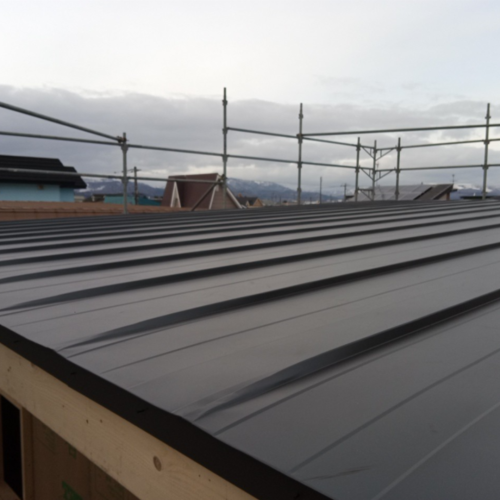 太陽光パネル搭載の家なので、屋根の下地も違います。