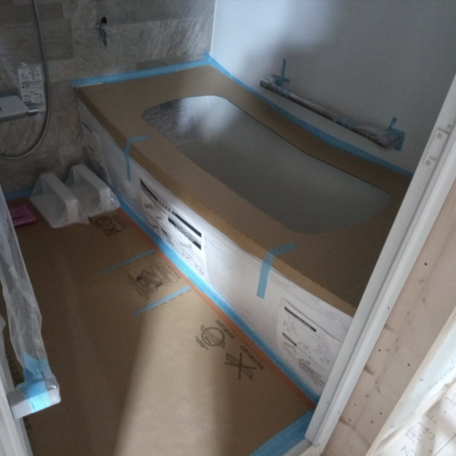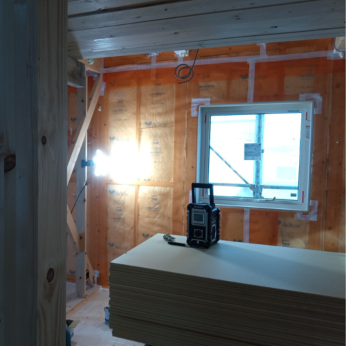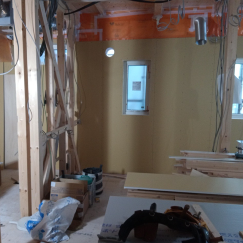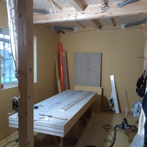 →石膏ボード(壁。この上にクロスを貼ります)の順で貼っていきます。
