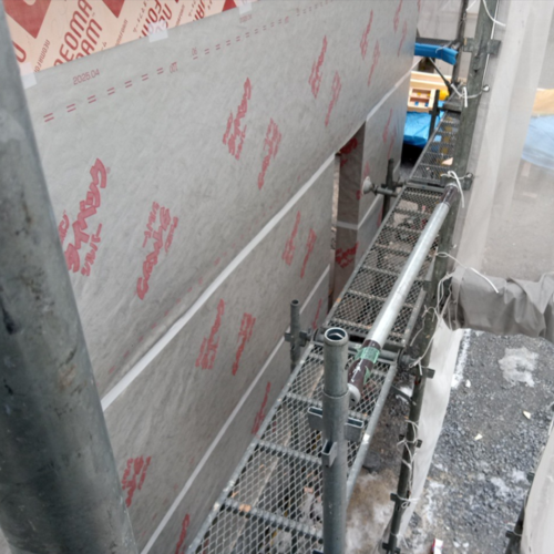 2種類の外壁材を使用する為、胴縁の向きも違います。