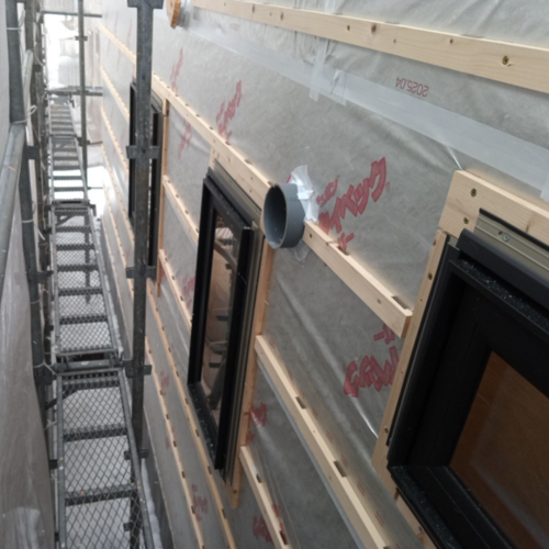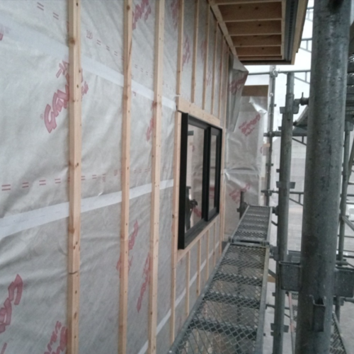 ↓この面は外壁材を縦に貼るので胴縁は横になります。