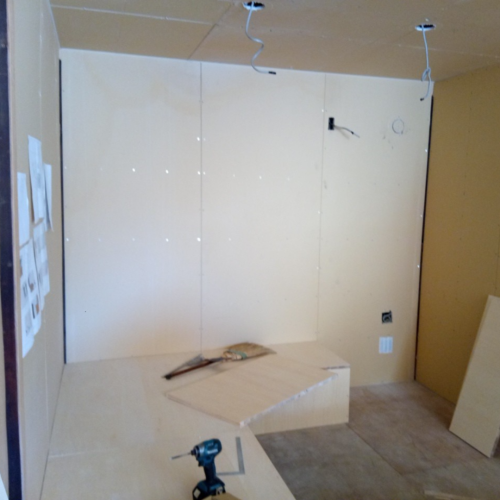 間仕切りを入れて事務所を作成。