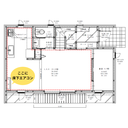弊社の戸建住宅の暖房は床下に設置したエアコン1台のみ。