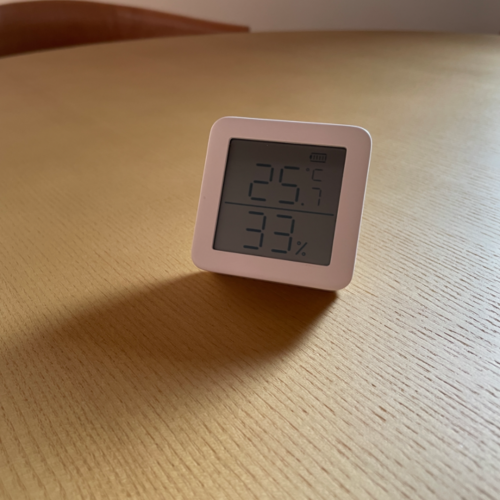 この温湿度計をモデル内に数か所置き、24時間温度データを収集しています。