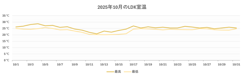 エアコンは1階にあるにも関わらず、2階にある寝室も20℃以上をキープしています。