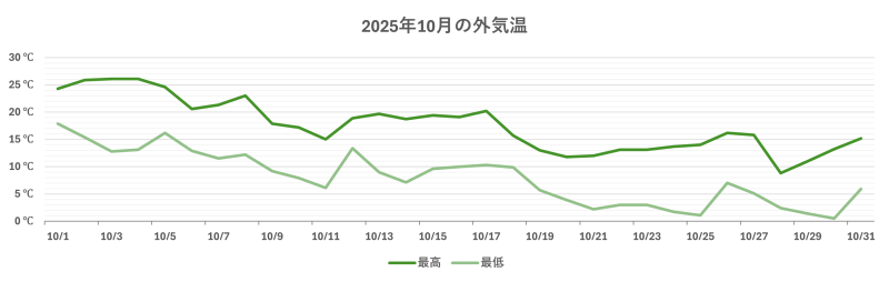 外気温のグラフを見ると、前半は20℃を超えるくらい暖かい日が続いていたのですが